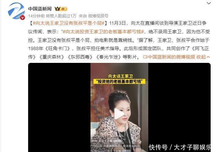 向太在直播里聊到王家卫,说他拍电影经常超出预算,亏掉很多钱,她提到《阿飞正传》这类片子,要是没有剪辑师张叔平帮忙,根本成...